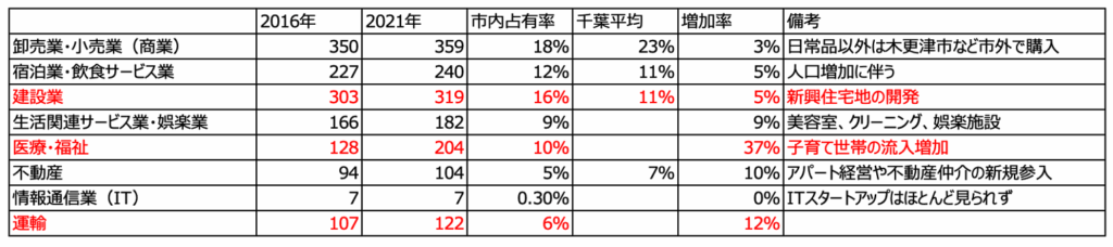 近隣4市で事業所が減っていないのは袖ケ浦市のみ。という統計が出ていました。木更津は商人の街というイメージがあり飲食店等のお店が新しく出来た等、聞いたりしていたので意外です。