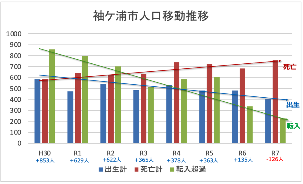 原因として考えられるのは住む土地の飽和状態、袖ケ浦市に住む魅力不足など考えられますが、対策として考えられるのは現在、有効利用されていない土地・建物を他市には無い魅力のあるエリアに如何に変えていくか。だと考えます。