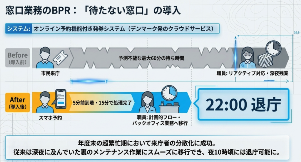 行政窓口のデジタル化は、市民の「書く手間」「待つ時間」「移動する負担」を削減し、同時に職員を単純な入力作業から解放して専門的な相談業務へシフトさせるインパクトを持つ。